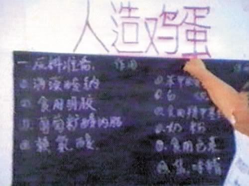 趕快檢查你們家的蛋....是不是有什麼異狀 大陸黑心品果然是名振天下.. .. 人工蛋技術學校 ~"~ (真是傻眼)