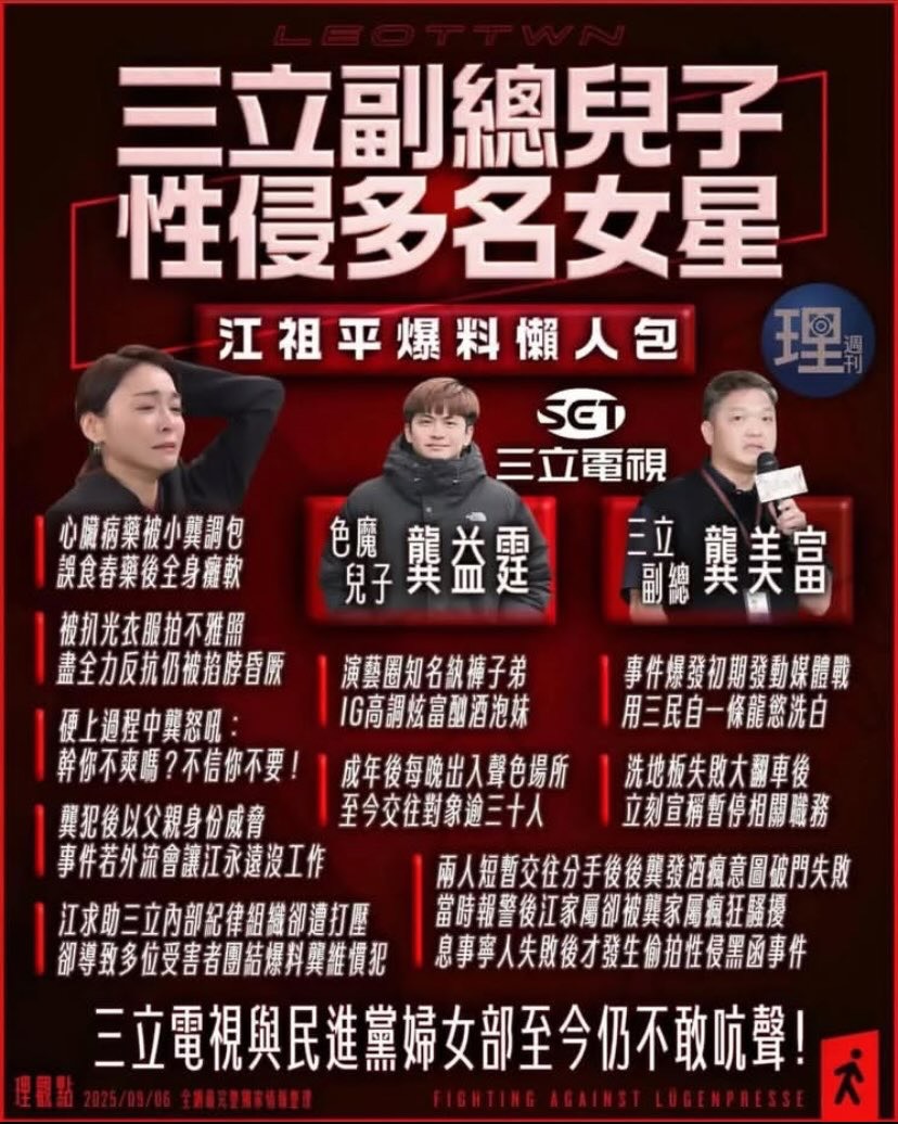 江祖平8月中旬透過社群媒體指稱某女演員遭電視台人員侵犯、偷拍,還有其他電視台女員工遭性騷。被指控者後續稱與江祖平曾交往;江祖平則間接承認自己就是受害當事人。整起事件引發社會關注和討論。