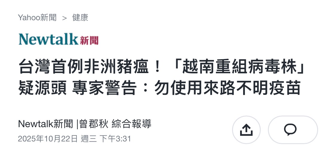 非洲豬瘟就是民進黨蔡英文南向政策,導致中央邊境管理鬆散導致