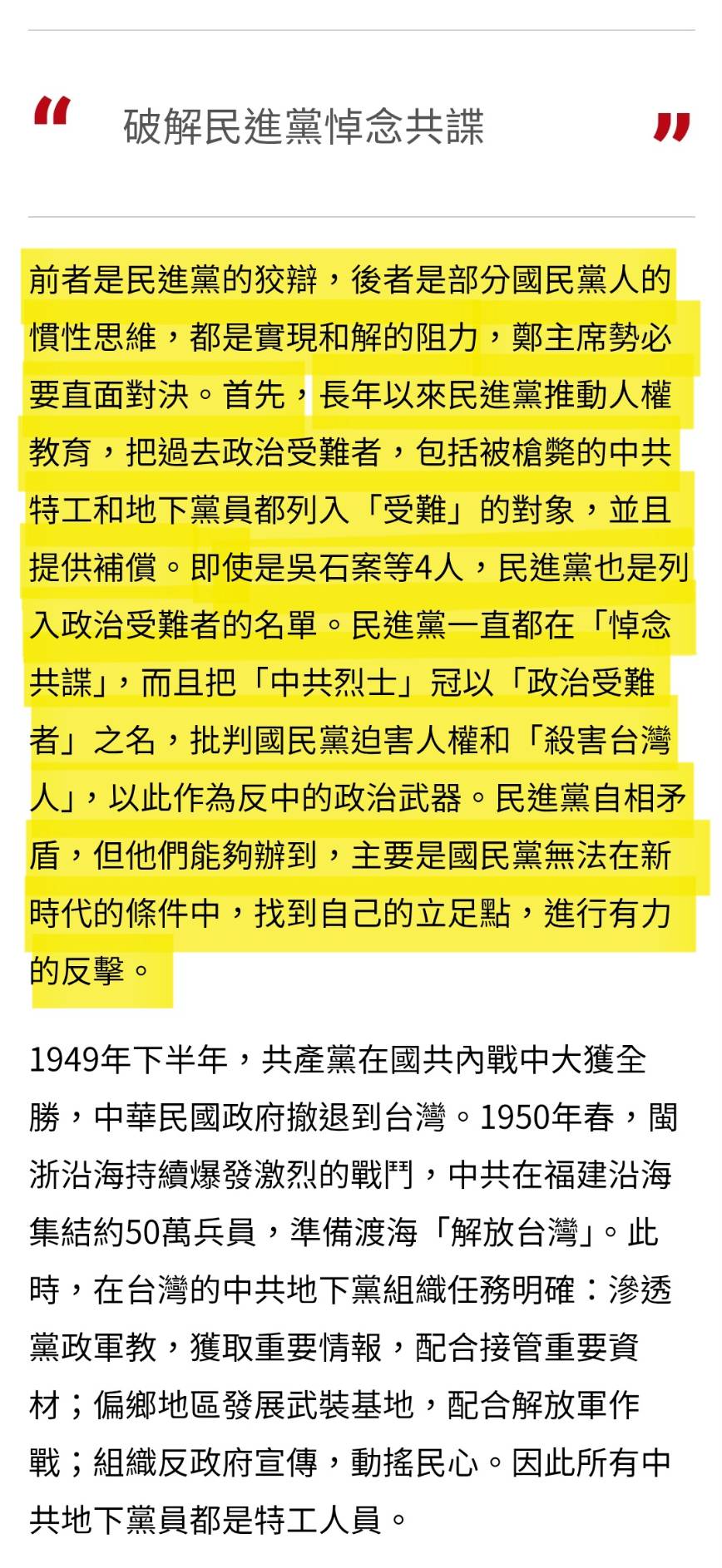 民進黨給平反、給錢補償、年年紀念的都是共產黨