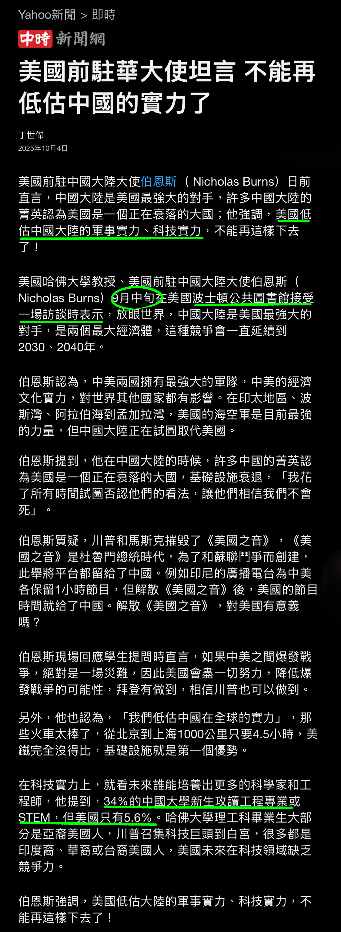 伯恩斯抱怨馬斯克裁掉了USAID政府部門 但是它卻忽略了財務支出及美國政府的高額負債 從成本角度看,貪污嚴重,成本過高,效率低落...所以會被裁