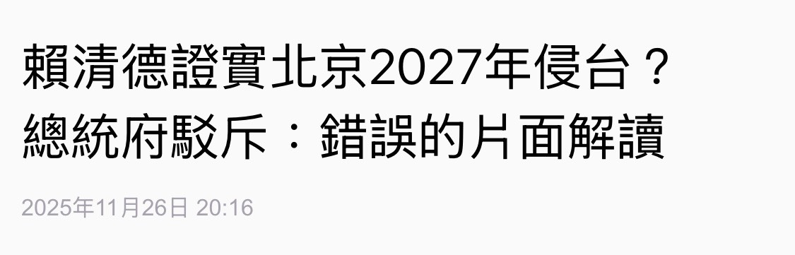 既然總統府與賴清德都否認2027戰爭!