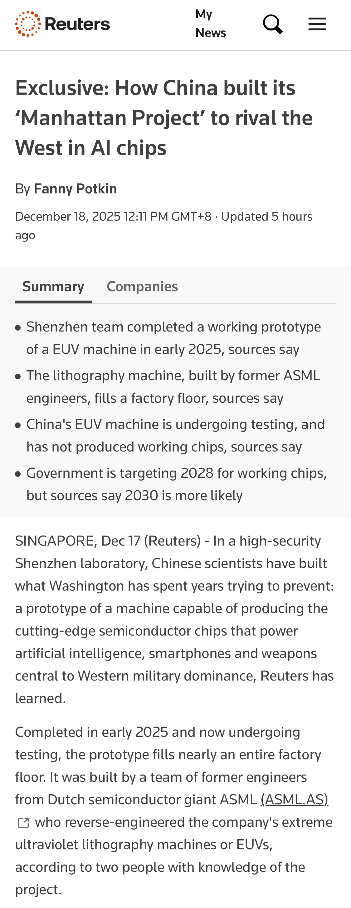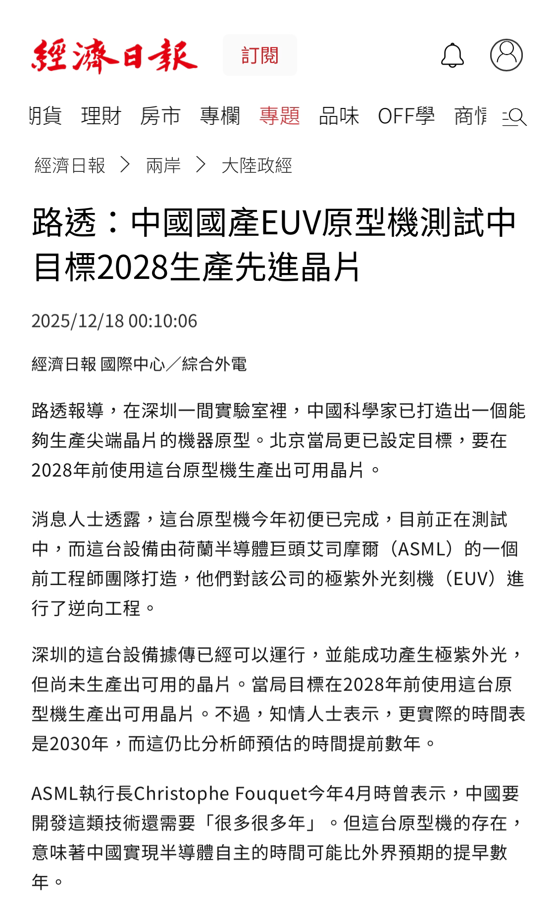 … Shenzhen team completed a working prototype of a EUV machine in early 2025…