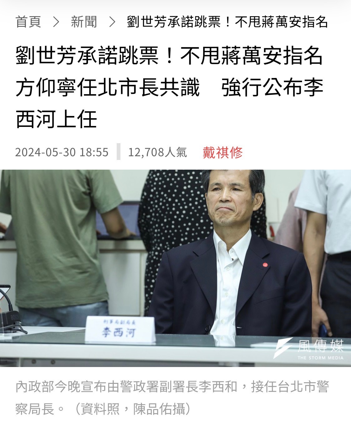 我不是說李西河不好, 而是 劉世芳「陰陽」蔣萬安!