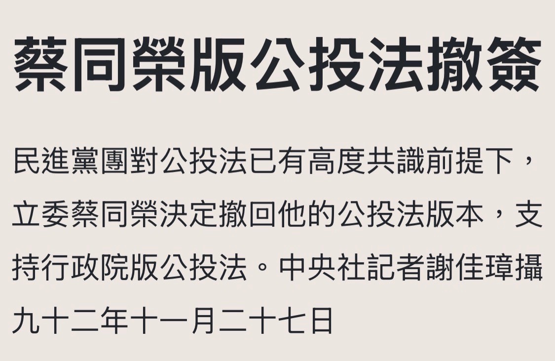 已薨的菜公投, 撤簽自己的公投法! 因為菜公投的版本是: 台獨也能公投… 結果 自己嚇尿了!