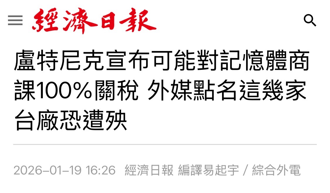 暨得逞台積電後盧特尼克得寸進尺點名台灣記憶體100%關稅(已經說好的15%呢?)